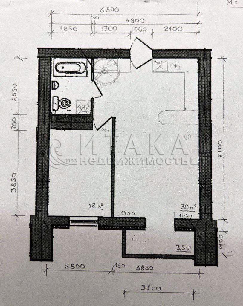 Общая/Жилая30м²