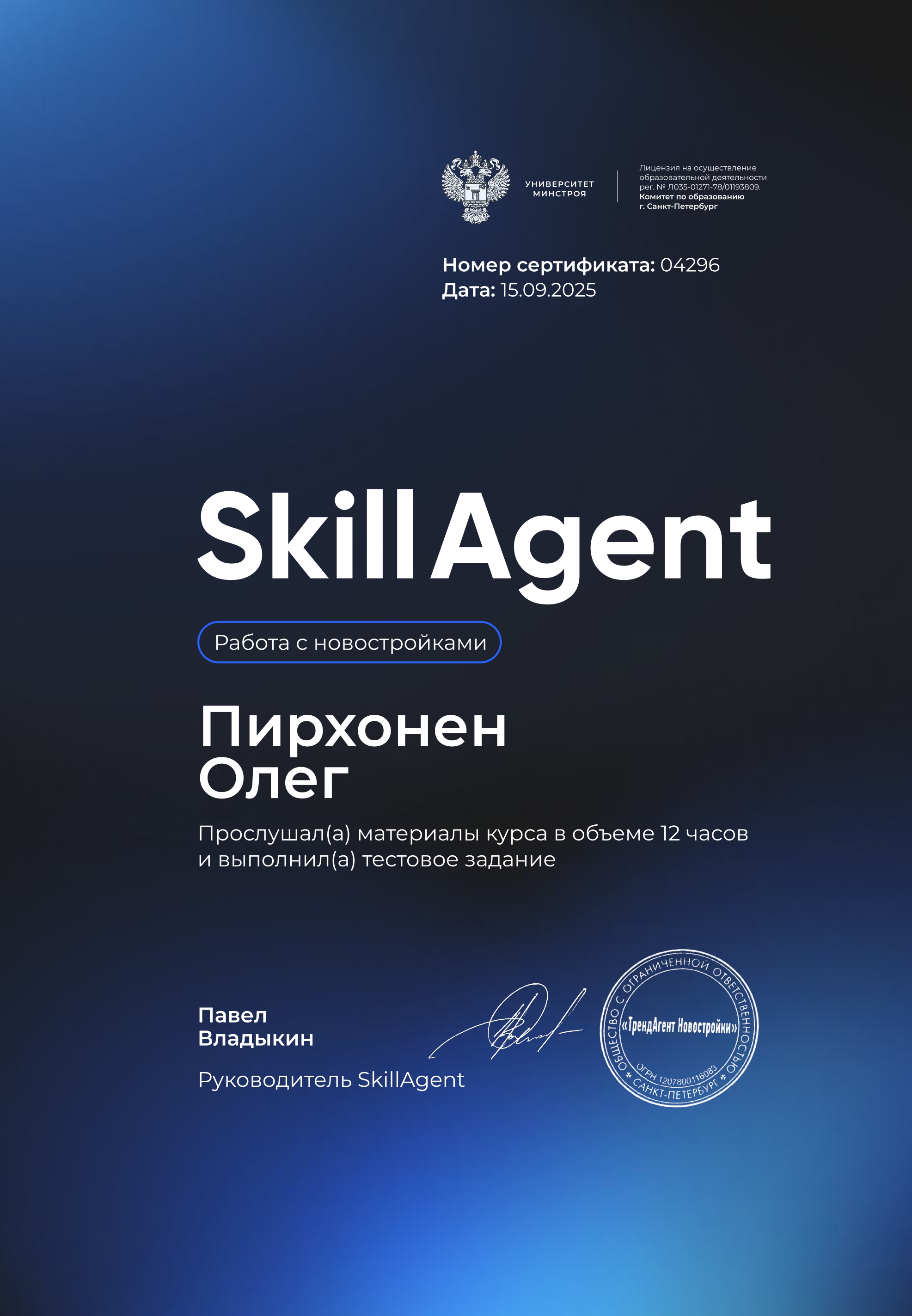 Как инвестор, я работал со многими агентами. Олег Пирхонен выделяется аналитическим подходом. Он не просто показывает объекты, он предоставляет полный анализ окупаемости, рисков, потенциала района и будущей ликвидности. Его советы основаны на цифрах и глубоком знании рынка, а не на желании просто быстрее закрыть сделку. Надежный партнер для серьезных инвестиций.