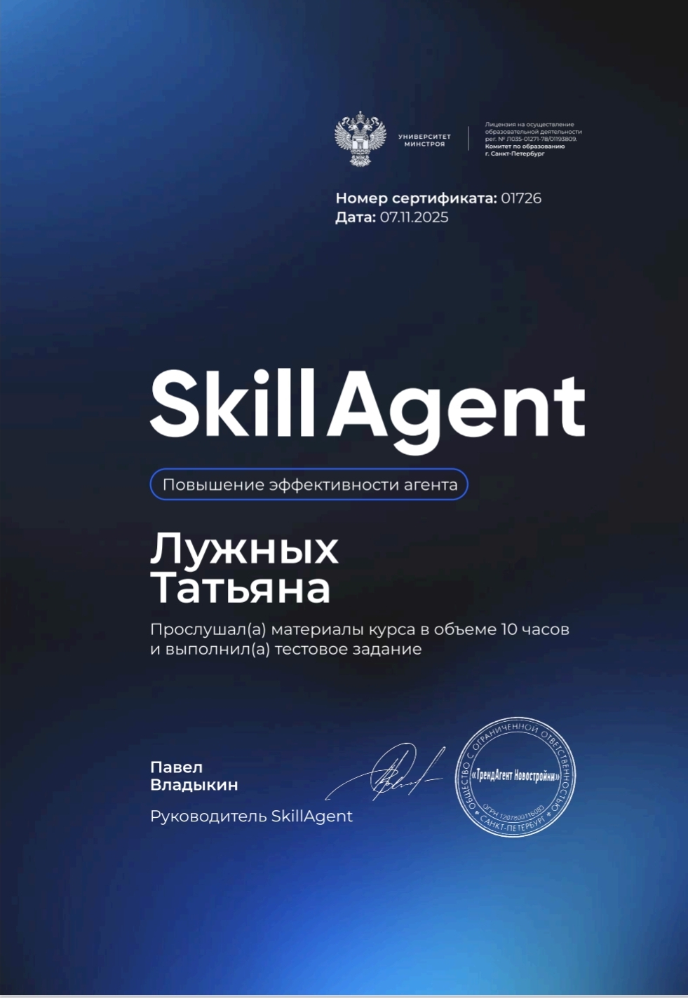 - Развивать свои профессиональные навыки и оставаться в курсе последних тенденции на рынке недвижимости.