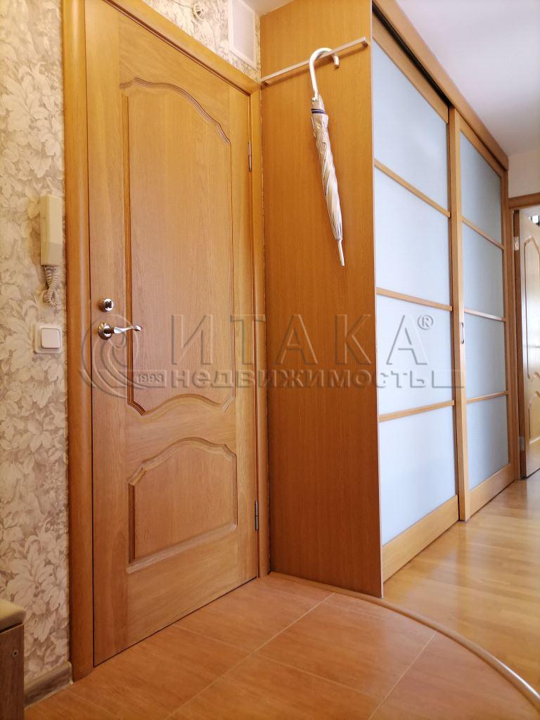 Трехкомнатная квартира с хорошим ремонтом. Перед входом отгорожен закрытый тамбур на две квартиры, где есть шкаф для хранения вещей. Кирпичный дом внутри квартала. Все вокруг в зелени, тихо.