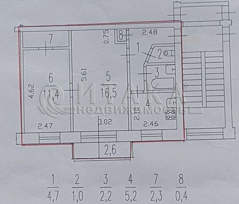 2-комнатная квартира 43.7 м², этаж 5/5