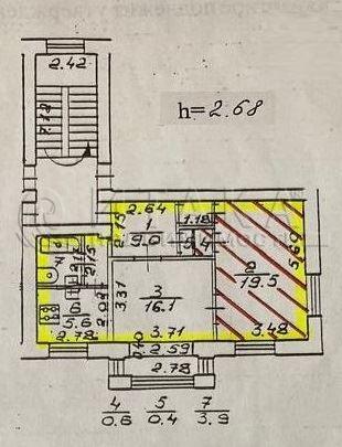 Комната 19,5 м² в 2-комнатной квартире, этаж 2/3