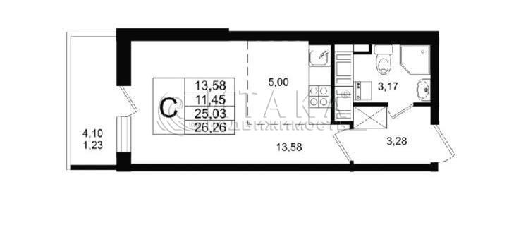 Квартира-студия 25.1 м², этаж 25/25