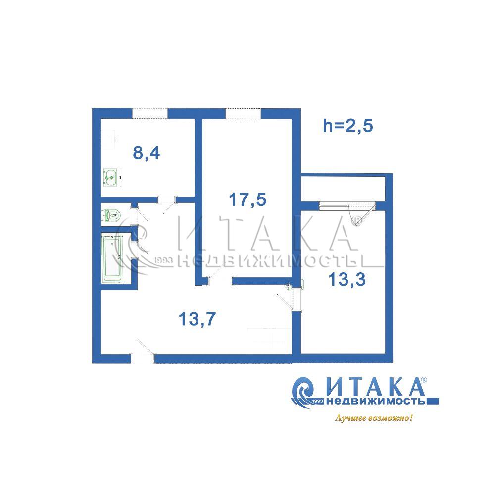 2-комнатная квартира 58.9 м², этаж 1/5