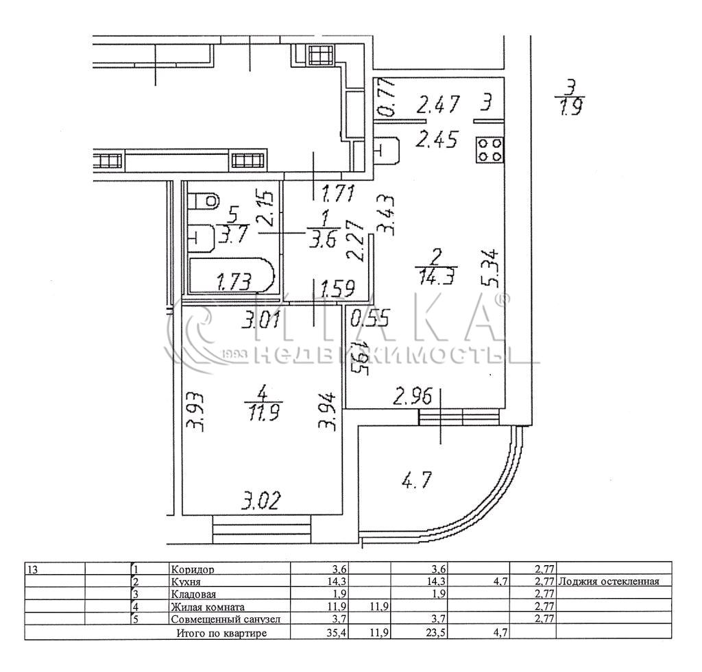 ЖК "ЦДС Dreamline" 2024 г.п.. Собственность.Кирпично-монолитный комплекс комфорт-класса.Предлагаем однокомнатную квартиру площадью 35,4 кв.м., расположенную на 13 этаже 15-этажной секции.Комфортная продуманная планировка: кухня 14,3 кв.м. с выделенной кладовой 1,9 кв.м., из кухни выход на лоджию 4,3 кв.м. (площадь которой не учтена в общем метраже квартиры); спальня 11,9 кв.м., санузел - совмещённый, установлена ванна; коридор-прихожая 3,6 кв.м.Высота помещений 2,77 м.Квартира с чистовой отделкой.Life Style:- в комнате обои под покраску;- ламинат, повышенной износостойкости 32-33 класса;- керамическая плтика в санузле;- счетчики тепла, электричества и воды;- домофон с LED-экраном;- на лоджии - витражное остекление, пол - плитка.Концепция безопасный дом:- закрытая придомовая территория;- видеонаблюдение;- принцип "двор без машин";- многочисленные детские площадки и зоны для занятия спортом.Активно развивающийся перспективный район.Рядом работают универсамы Дикси, Лента, Лемана Про (бывш. Леруа Мерлен), салоны красоты, аптеки, отделения банков. В шаговой доступности Новоорловский парк, Шуваловский карьер. В 2-ух километрах Юнтоловский заказник.Прямая продажа. Без ограничений и обременений.Один взрослый собственник.Материнский капитал не использовался.Полная стоимость в договоре.Показы в удобное для Вас время.Елена Викторовна.