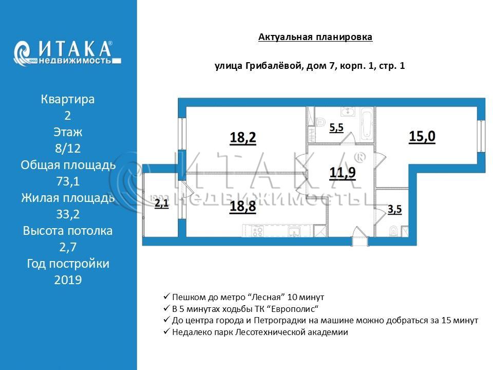 Продаётся современная двухкомнатная квартира в новом жилищном комплексе комфорт класса «Life Лесная». Квартира двухсторонняя, просторная кухня 18.8 м. с застеклённой лоджией и комната 18.2 выходят на ул. Грибалёвой, окна комнаты 15 м. выходят в пространство внутреннего двора. Квартира с отделкой от застройщика Pioneer, ремонт делался для себя по дизайн-проекту. В ЖК закрытая безопасная территория, круглосуточное видеонаблюдение и охрана, несколько детских площадок, спортивная площадка с тренажерами, зоны отдыха с навесами, подземный паркинг. Отличная локация, пешком до метро 10 минут, до центра города и Петроградки на машине можно добраться за 15 минут. В 5 минутах ходьбы ТК “Европолис“ с магазином “О'Кей” с широким ассортиментом продовольственных товаров, рядом МиниЛента, Вкустер, Вкусвилл и другие магазины, недалеко парк Лесотехнической академии. Район обжитой, социальная инфраструктура также развита, имеются школы, детские сады, поликлиники. В собственности больше 5 лет. Покупали у застройщика на этапе строительства.