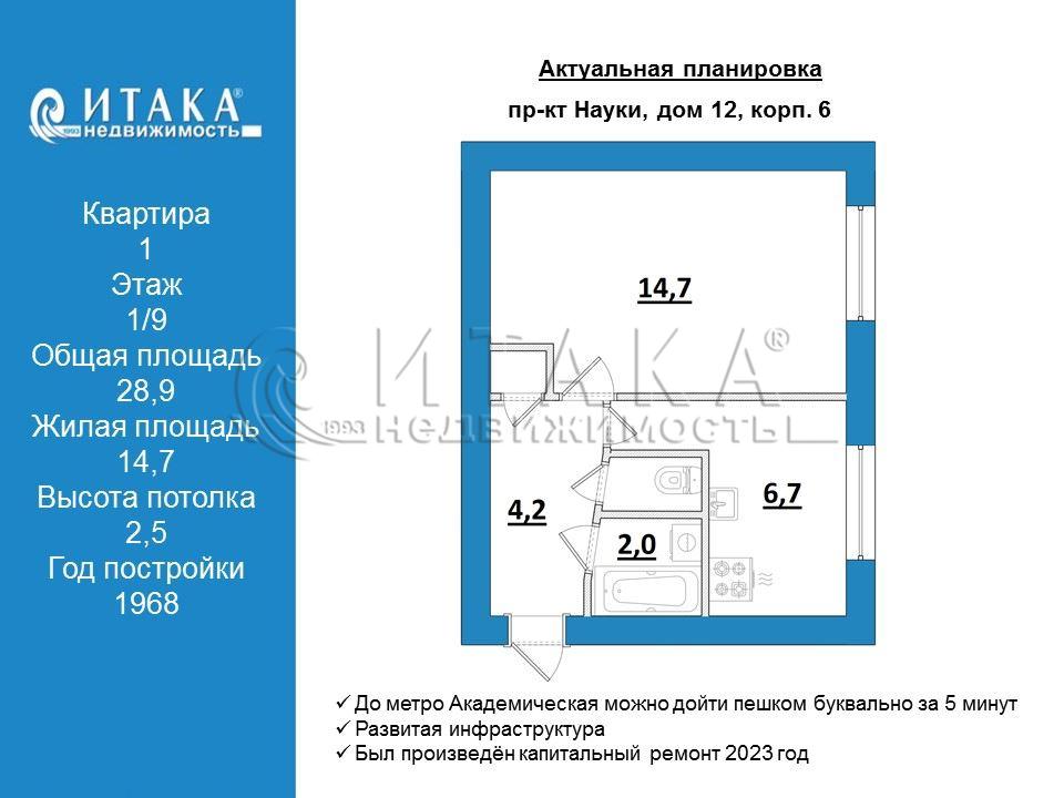 Уютная 1-комнатная квартира у метро!Находится на комфортном 1 этаже, отделена от парадной отдельным тамбуром со своим личным выходом на улицу!Комната 14,7кв.м широкая, это позволит расставить мебель по своему вкусу. Кухня небольшая, 6,7кв.м, но широкая, поэтому поместится вся необходимая мебель и техника. В коридоре есть кладовка, в которой можно организовать гардеробную. Состояние квартиры хорошее. Можно сразу въехать и жить, а можно сделать ремонт под себя. Под окнами высажен кустарник, за которым находится просторный луг, так что нет эффекта «окна в окна». На окнах установлены решётки. Дом находится во дворе, поэтому можно наслаждаться тишиной и спокойствием, из окон видна детская площадка, поэтому можно наблюдать за своими детьми, если они гуляют самостоятельно. Удобное местоположение: в самом сердце Калининского района. Вокруг развитая инфраструктура: МФЦ, поликлиники, Детские сады и площадки, множество магазинов и Торгово-развлекательных центров. А до метро Академическая можно дойти пешком буквально за 5 минут. 2 взрослых собственника, в собственности более 5 лет. - Уютная квартира в шаговой доступности от метро- Развитая инфраструктура- 1й этаж- нет проблем с лифтом и не надо подниматься по лестнице!Звоните! Я с удовольствием запишу Вас на просмотр!