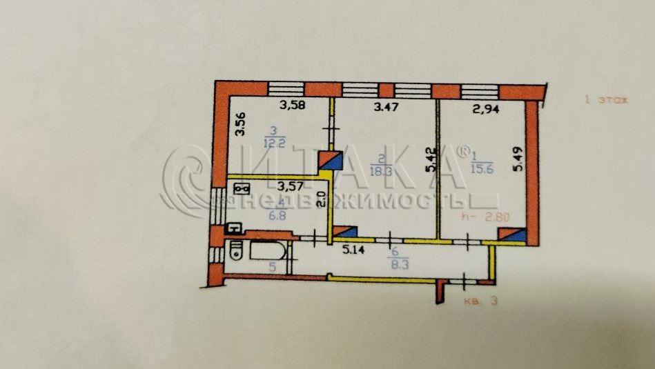 3-комнатная квартира 63.9 м², этаж 1/2