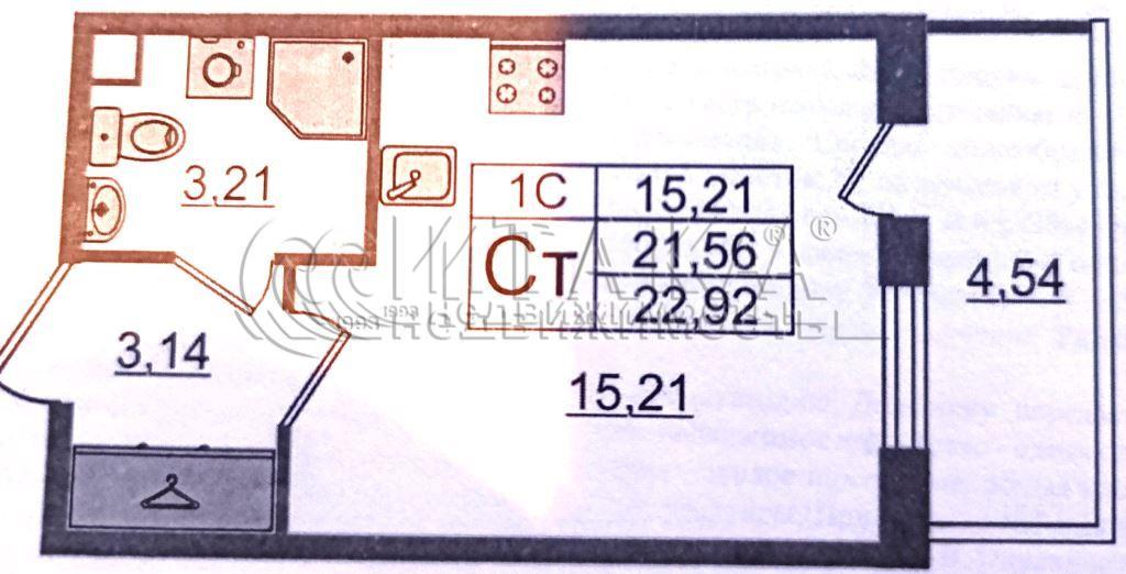 Квартира-студия 22.92 м², этаж 3/5