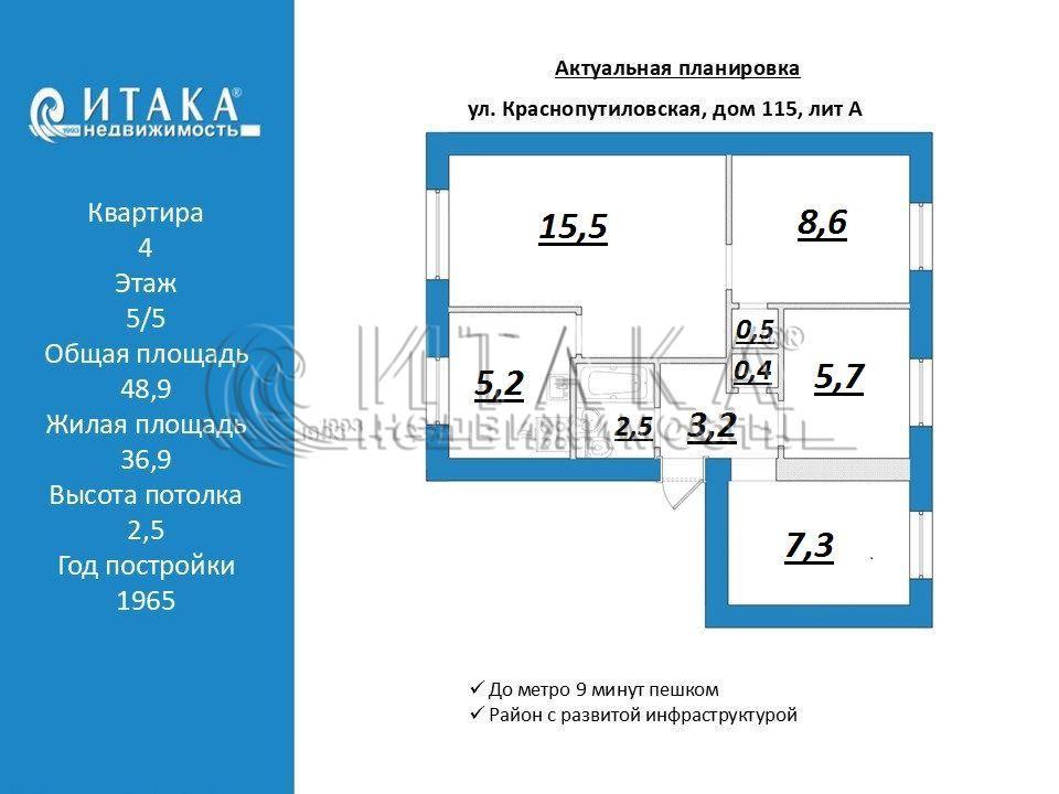 1-92792 Прямая продажа!Отличная квартира для семьи или как инвестицияТранспорт и доступностьРядом развитая инфраструктура и отличная транспортная доступность:· До метро «Московская» пешком 9 минут или 5 минут на транспорте (автобусы/троллейбусы прямо до вестибюля).· Аэропорт Пулково — всего 15 минут на автомобиле или такси. Идеально для тех, кто часто путешествует или работает в аэропорту.· Выезд на Краснопутиловскую и Московское шоссе удобный, без пробокВсё для семьи (Школы и Сады)В пешей доступности (в радиусе 5-10 минут) находится вся необходимая социальная инфраструктура:· Детские сады (в т.ч. ГБДОУ № 43 и рядом новый корпус на Новоизмайловском).· Средняя общеобразовательная школа (в шаговой доступности).· Районные поликлиники (детская и взрослая) — всё в пределах района, не нужно ехать через весь город.· Рядом аптеки, супермаркеты (Пятёрочка, Магнит, Перекрёсток у метро), отделения банков и МФЦ.О квартиреПросторная 4-комнатная квартира площадью 49 кв. м. (Соотношение цены и площади выгоднее, чем в студиях).· Этаж: 5 из 5. Преимущество — нет соседей сверху, тишина и хорошее состояние межэтажных перекрытий.· Ремонт: Косметический/базовый. Квартира полностью готова к проживанию. Можно заехать жить сразу, а ремонт на свой вкус делать постепенно, не торопясь.· Планировка: три изолированные комнаты и гостиная.Цена:Почему это выгодно? Очень хорошее предложение для рынка (ниже среднерыночной цены за 4 к.кв в Московском районе).О сделке· Прямая продажа.· Один собственник, владеет квартирой очень давно — чистая история, юридическая безопасность, готовы показать все документы.· Показ в удобное время. Звоните, договоримся о просмотре!Итака. Работаем с 1993 года.